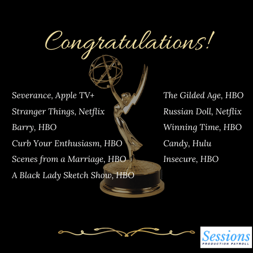 The 2022 Primetime Emmy Awards nominees were announced last week, and Sessions clients received a total of 57 nominations! A big congratulations to all nominees, especially to the talented, hardworking, and deserving cast and crew of Severance (Apple TV+), Stranger Things (Netflix), Barry (HBO), Curb Your Enthusiasm (HBO), Scenes From a Marriage (HBO), A Black Lady Sketch Show (HBO), The Gilded Age (HBO), Russian Doll (HBO), Winning Time (HBO), Candy (Hulu) and Insecure (HBO).